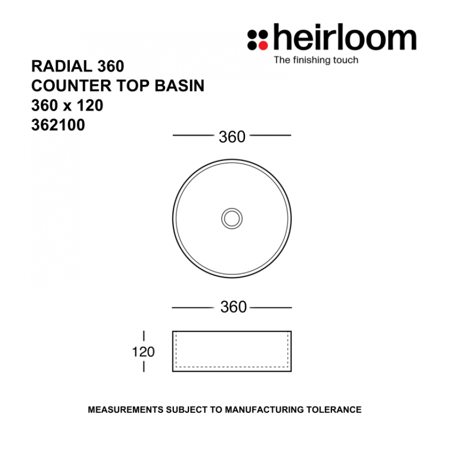 The essence of simplicity. Radial countertop basins round form with a refined slim wall will make an elegant centrepiece. The Radial Basin partners beautifully with the Heirloom T209 and T308 tapware series and round/minimalist accessory ranges