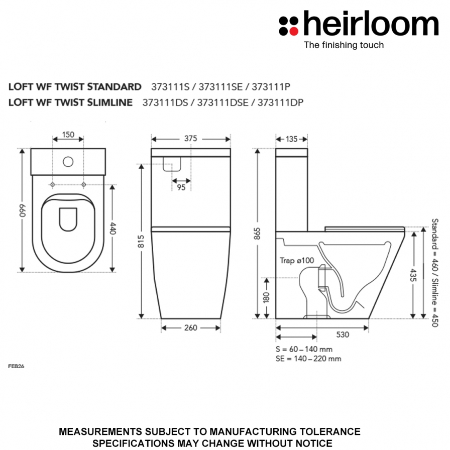 S pan suite: 60 - 140mm Set Out Universal Inlet 372111S
