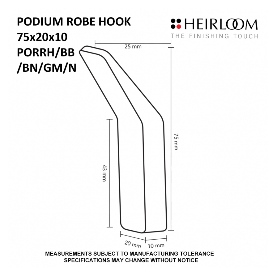 Elevate your bathroom with the sophisticated style of the Podium robe hook. Crafted by Heirloom, this accessory offers a sleek, minimalist design that complements any modern bathroom decor. Made from premium brass, the Podium robe hook is designed for durability and elegance, adding a touch of refinement to your space. With a 10-year warranty, it combines quality with assurance, making it an ideal choice for long-lasting bathroom solutions.